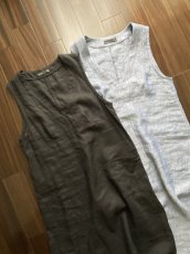 深いVネックがデザインポイントのロング丈ノースリーブワンピースです。
