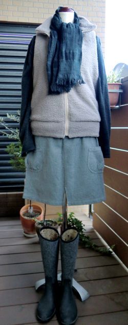 表は ジャカードニット、裏は ボア、裾布は裏地と同じにしています。
